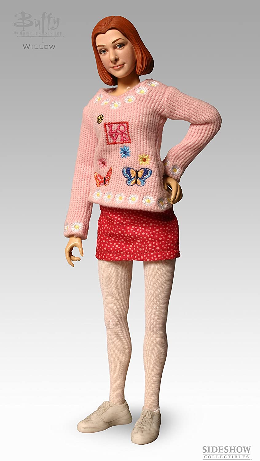 Sideshow Collectibles is proud to bring you Willow from the episode ‘Dopplegangland,’ the perfect companion for your 12″ Vampire Willow figure. This figure features over 30 points of articulation, an authentic Alyson Hannigan likeness, and is costumed in white tights, tennis shoes, polka-dot skirt, and trademark pink fuzzy sweater. Willow comes with Amy the Rat, the tranquilizer gun, and a 12 inch Buffy figure display stand.