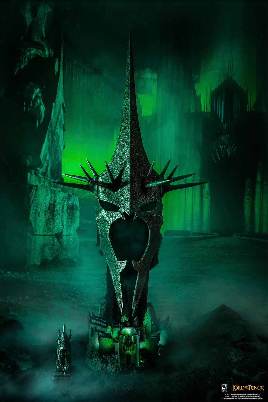 The second installment to our The Lord of the Rings series, the extremely limited The Witch-king of Angmar 1:1 Art Mask Exclusive Edition is a must-have bust style collectible for all LOTR fans. Standing at just under 3 feet tall, this massive helmet is perched upon an eerily lit Tower of Sorcery at Minas Morgul.