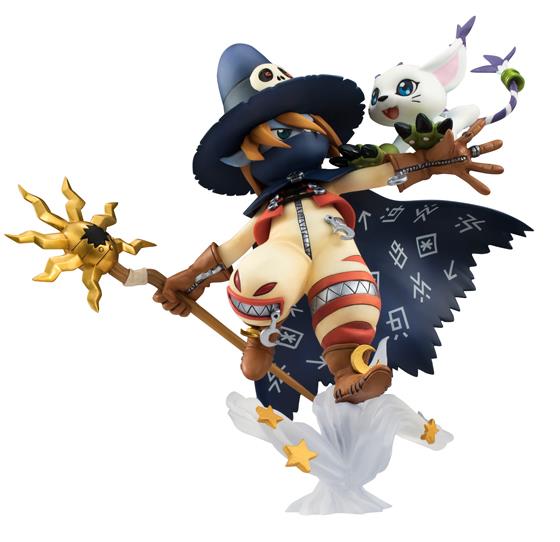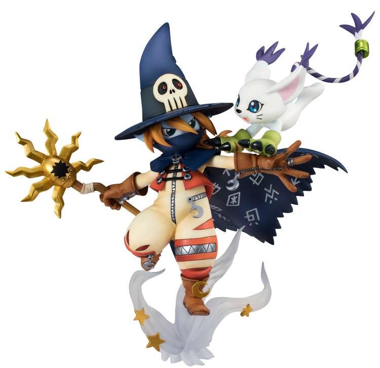 From the Digimon anime comes a figure of Wizarmon and Tailmon as part of the G.E.M. series! Around 5 inches tall, Tailmon is depicted leaping onto Wizarmon’s arm.