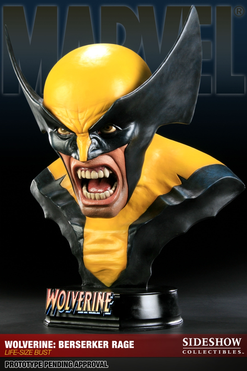 Sideshow Collectibles and Marvel Comics proudly present the Wolverine: Berserker Rage Life-size Bust, the latest addition to the Marvel collectible line. Each piece is individually painted and finished, each with its own unique quality and detail that is the trademark of a handcrafted Sideshow Collectibles product. Capturing every detail of Weapon X, the Wolverine: Berserker Rage Life-size Bust is a perfect addition to any Marvel collection!