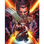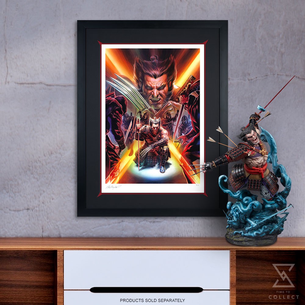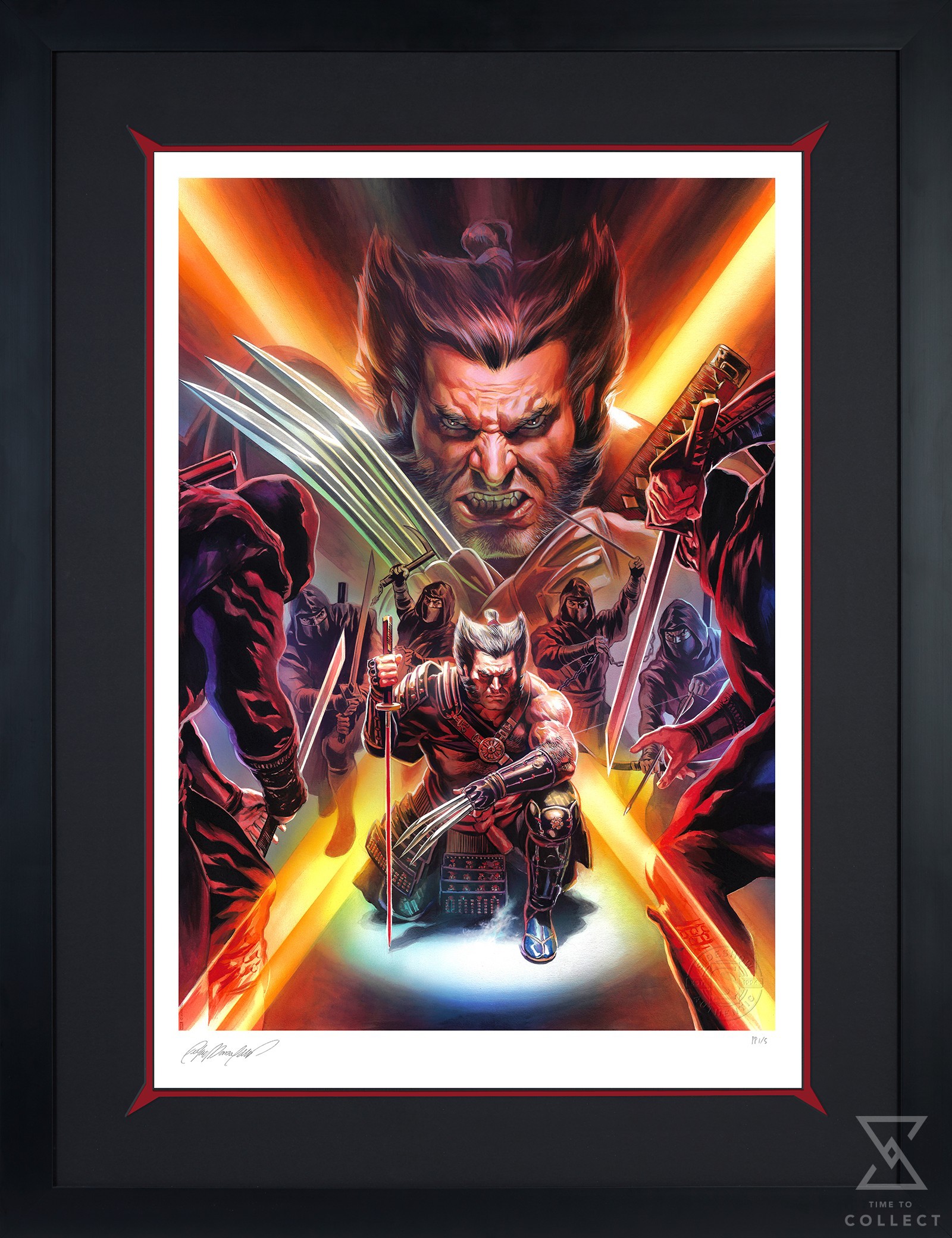 Crossed blades mark the site of battle for Wolverine, the swordsman who cannot — and will not — die. Inspired by the character’s rich past and an alternate Marvel Universe set in feudal Japan, this action-packed illustration shows the wandering warrior in a moment of pause before conflict. Logan is surrounded by shadowy warriors, each seeking to defeat the Adamantium-infused samurai. But the ferocious mutant has strengths they could never dream of: his claws, his rage, and the fabled Muramasa Blade.