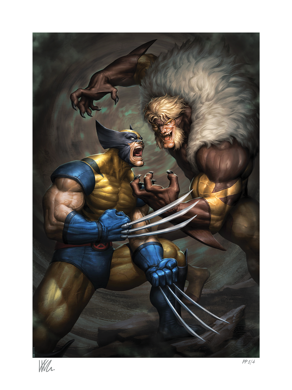 Sideshow presents the Wolverine vs Sabretooth Fine Art Print, a thrilling Marvel art print by artist Kendrick Lim.