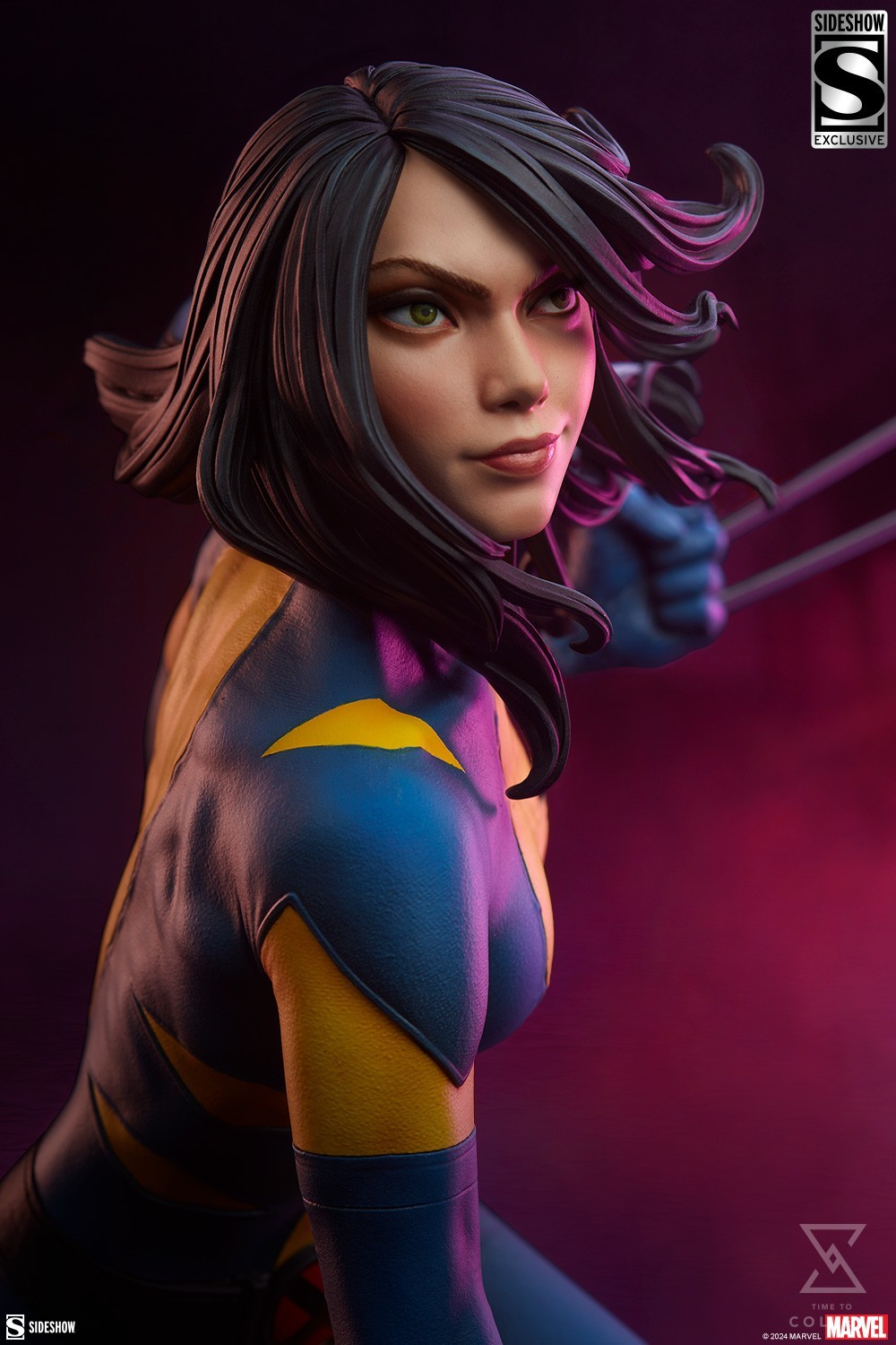 The Exclusive Edition of the Wolverine: X-23 Premium Format Figure includes an additional swap-out unmasked portrait, which features a closer look at Laura’s bold smirk and dauntless green eyes. As her black hair flies wildly in the wind, she becomes the picture of her beautiful but deadly namesake: the Wolverine.