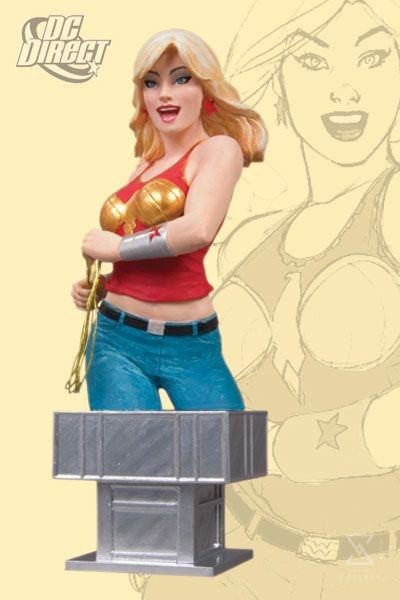 The popular women of the dc universe line of cold-cast porcelain busts continues with terry Dodson’s wonder girl. Seen here standing atop titans tower, this fearless teen wonder has Ares’ lasso twined at her side. Collect all of the women of the DCU: series 2 busts. Wonder girl joins wonder woman, star fire, cheetah, Batwoman and more. This wonder girl bust measures approximately 5.5” tall x 2.5” wide x 2.5” deep and is packaged in a 4-color box.