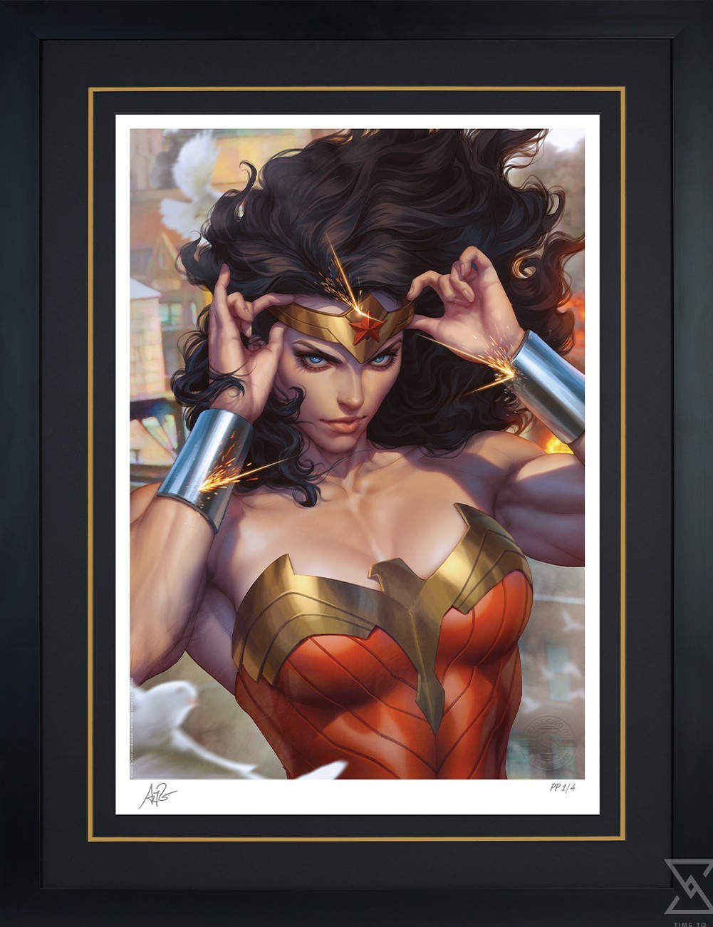 Originally created as a variant cover for Wonder Woman #1 (2023), written by Tom King for DC, this Wonder Woman art print is now available to fans as an unframed giclée print or in a custom framed presentation. Each Wonder Woman #1 Fine Art Print features an authorized, automated artist signature and an embossed Sideshow Seal of Authenticity as part of the limited edition of 200 pieces.