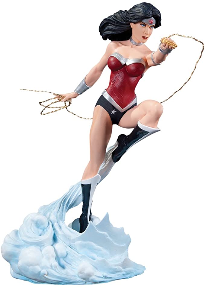 The warrior princess is back. The Amazonian demigod takes flight in her new costume based on the New DC 52. Designed by comics legend Jim Lee, Wonder Woman is armed with her golden lasso of truth–and truth be told–this statue will soon be a collector’s item. Statue measures approximately 9.75″” tall.
