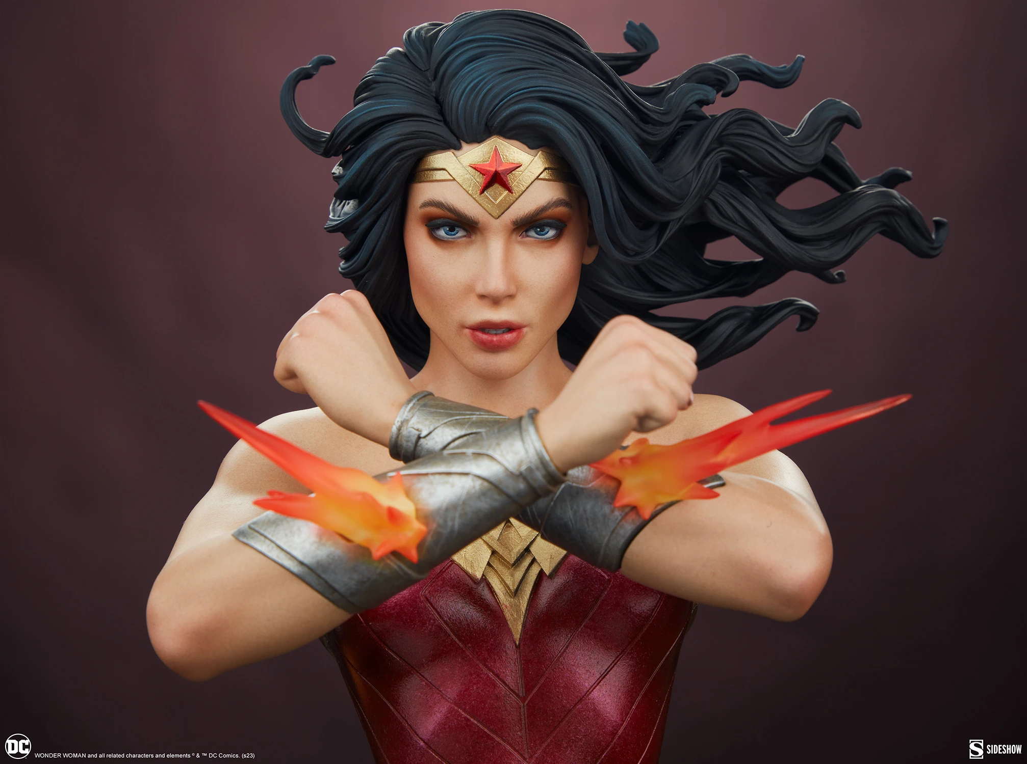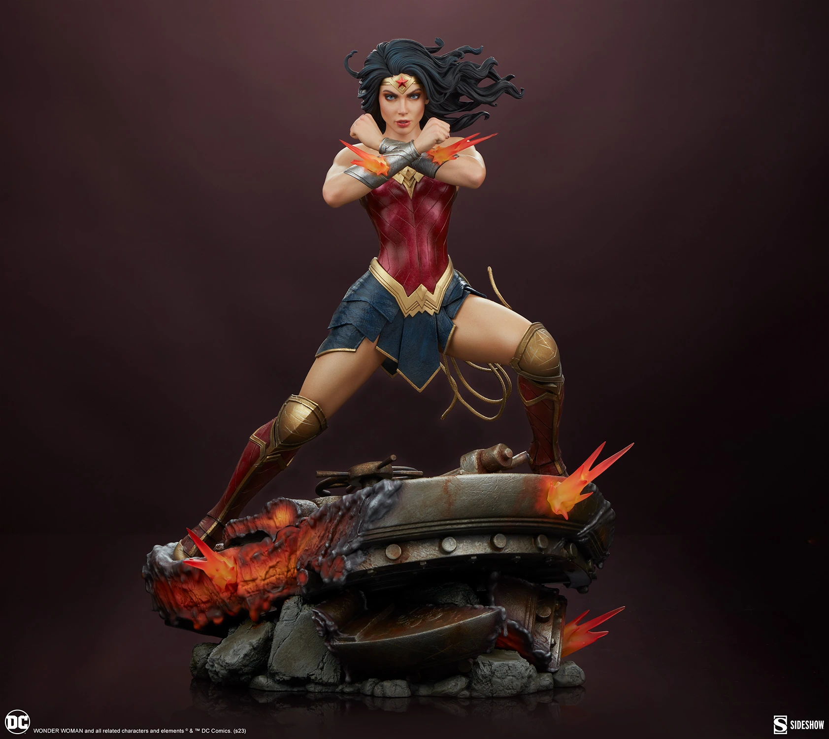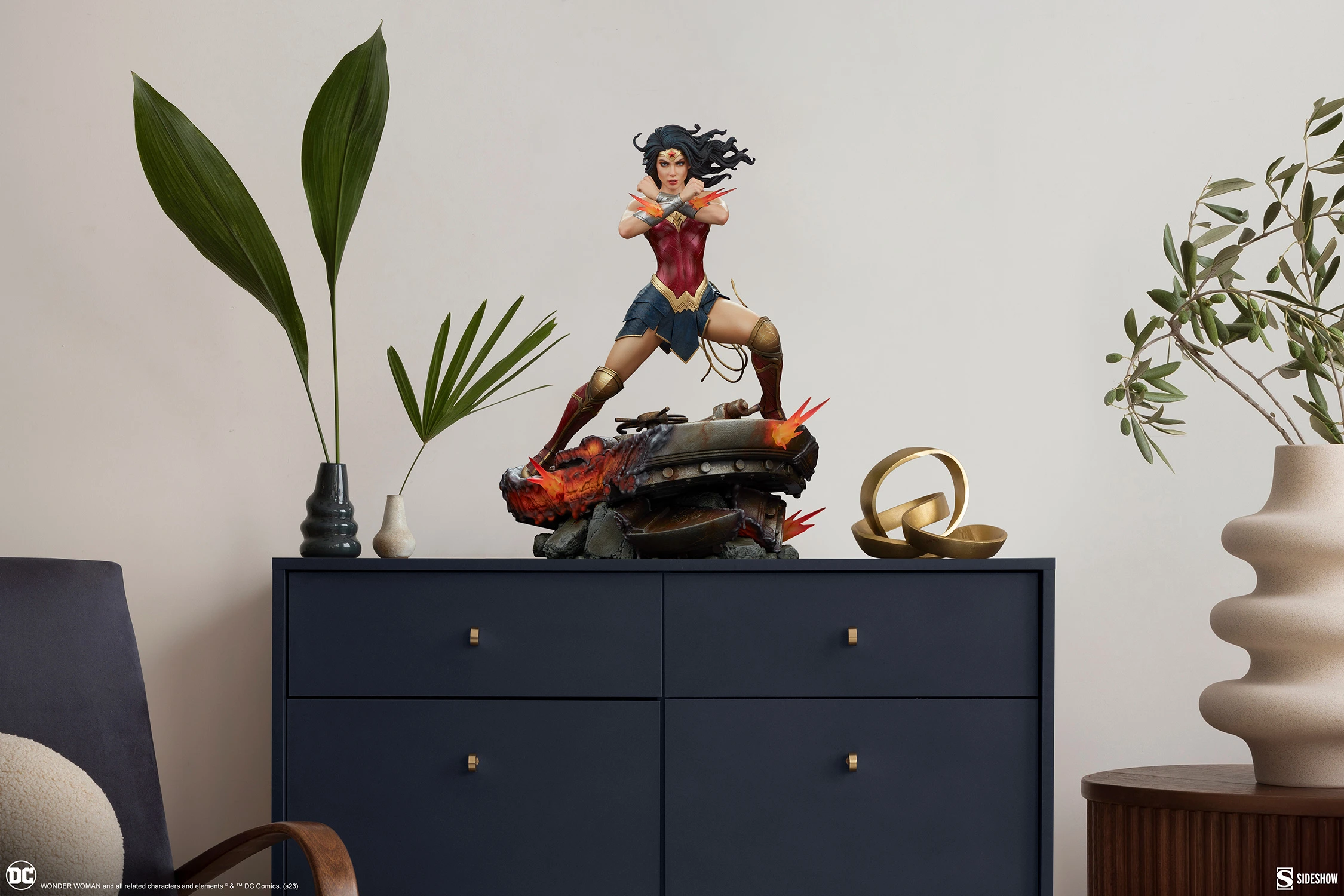 This collectible Wonder Woman statue pairs perfectly with other members of the Justice League like Superman, Batman, The Flash, and more, all sold separately. Create the coolest display in the DC Omniverse with other quarter scale DC Comics Premium Format™ Figure releases from Sideshow.