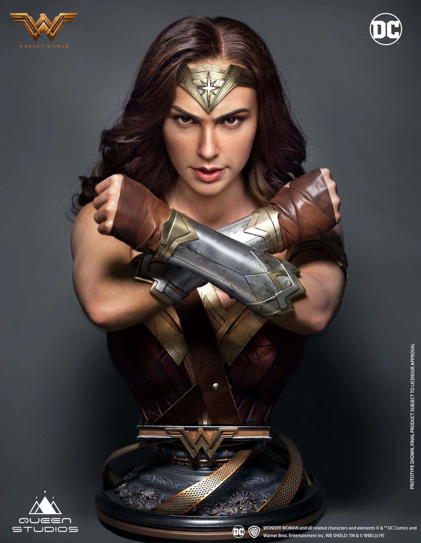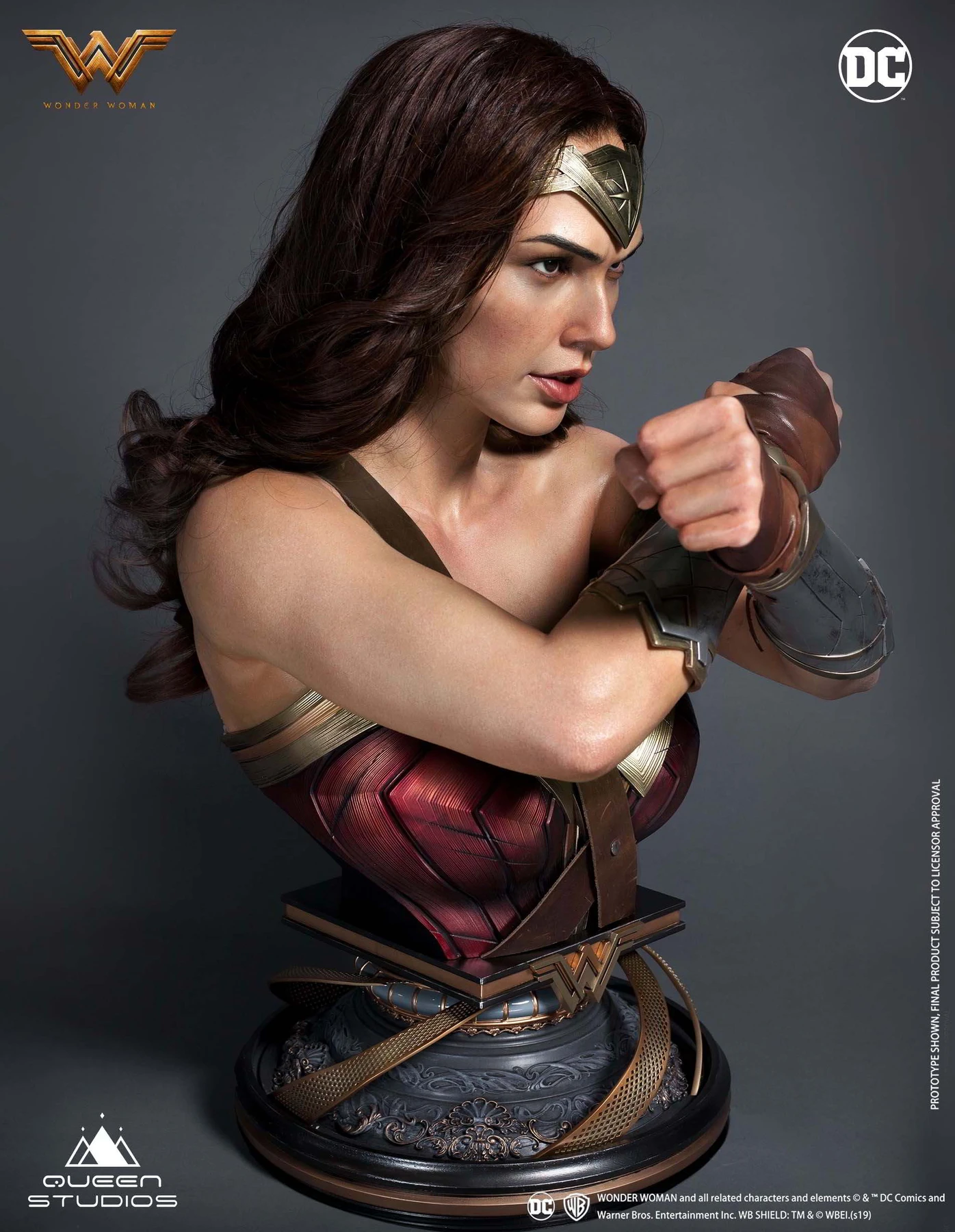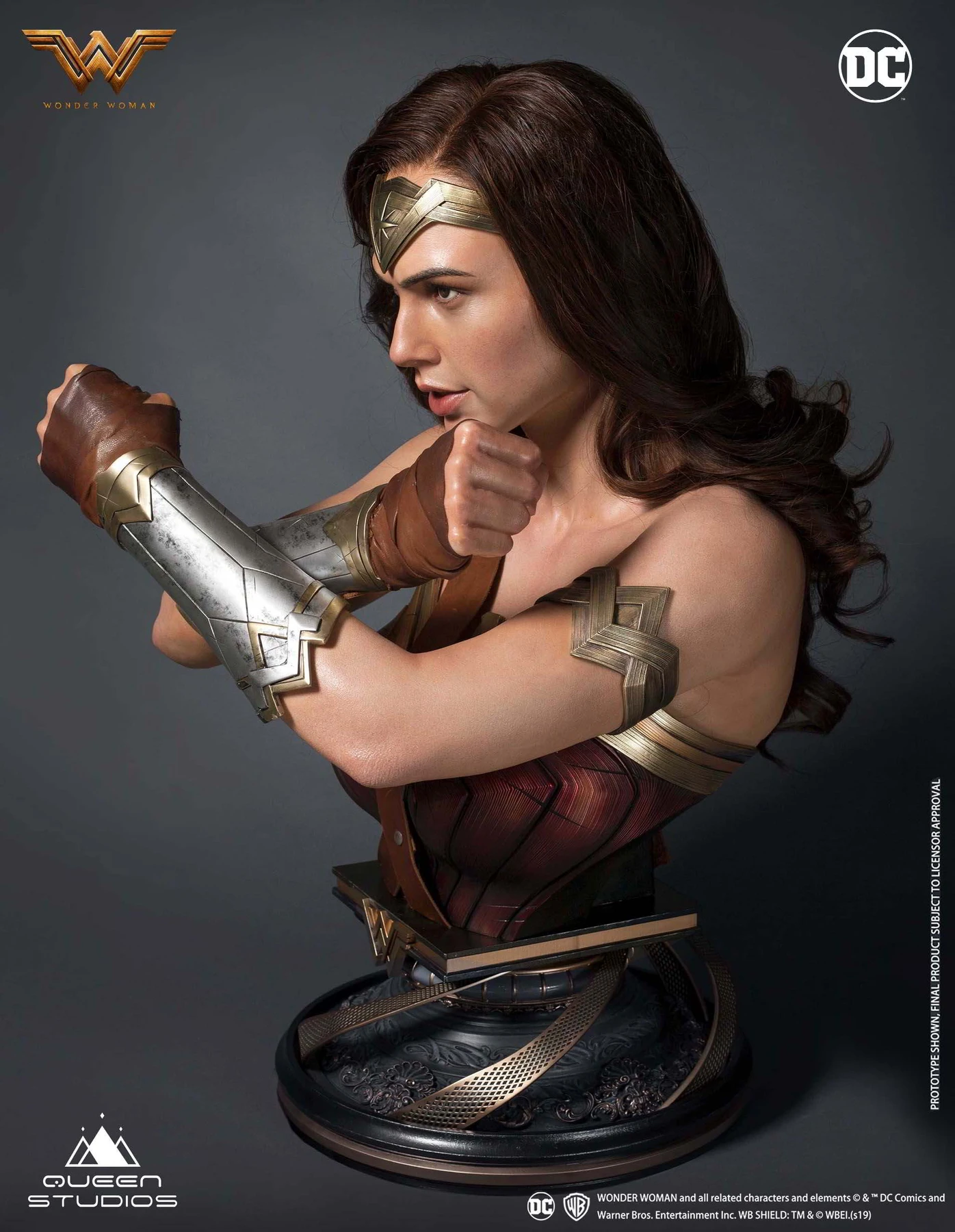 The Artists at Queen Studios have worked incredibly hard on the sculpt to make the bust look like as close to Gal Gadot (Wonder Woman) as possible. The sculpting team has paid close attention to each angle so she looks like the real character no matter which way you look.