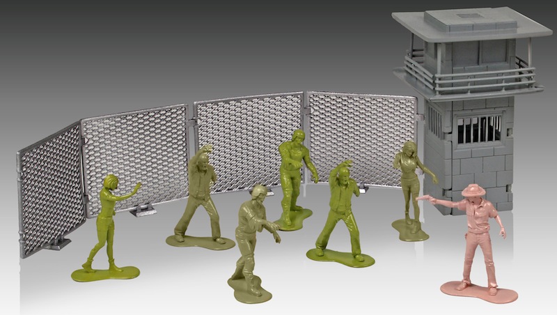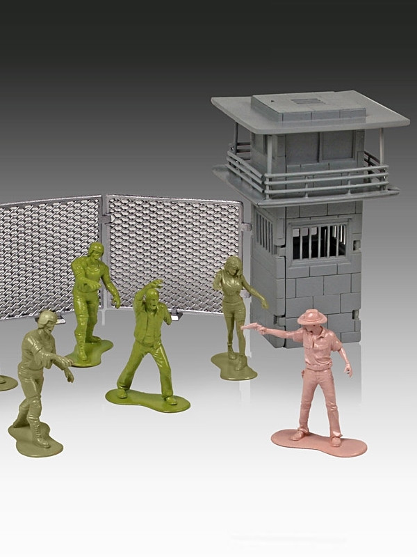 The war versus the Walkers continues with Gentle Giant’s Walker Army Men Series 3! Build your own Woodbury Prison Watchtower and fence to fend off roaming walkers. Combine multiple sets and stage an epic Prison Walker showdown! Featuring 3 brand new walker sculpts in two ghastly shades (six walkers in all!), this set also includes an exclusive Sheriff Grimes figure! Station Rick inside the prison tower for safety.