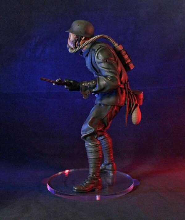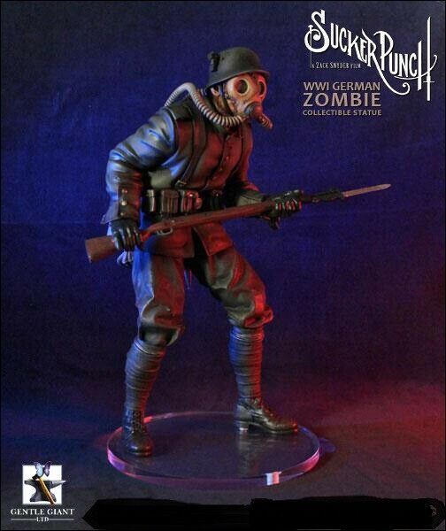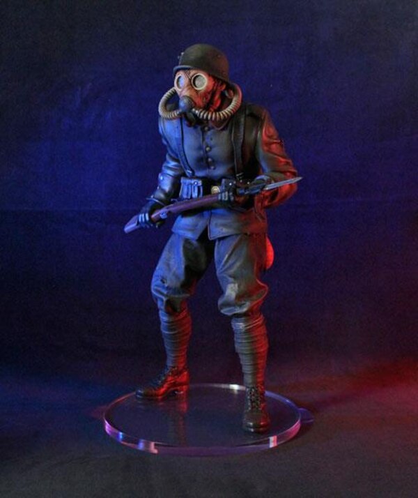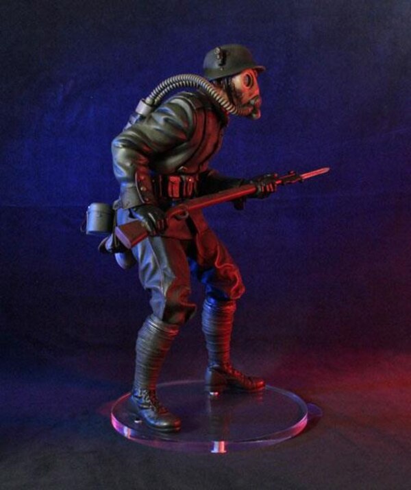Sculpted with precision details hand painted by professional artisans, this expertly crafted large scale statue stands almost an amazing 17” tall and features film accurate helmet and gas mask, bayonet mounted rifle, wire mesh eyes, weathered costuming and accessories. This is truly a showpiece for collectors and not for the meek of heart, strictly limited edition with Certificate of Authenticity.