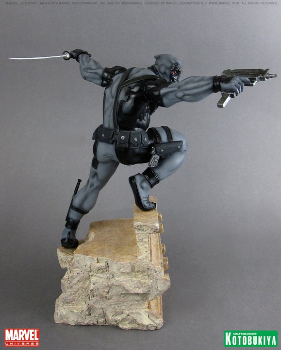 X-Force is the hottest mutant team right now in the Marvel Universe, with the current launch of Uncanny X-Force burning up the shelves everywhere. Teaming up the most vicious and morally flexible heroes, Wolverine leads the ultimate strike force willing to do anything, at any time to protect the world’s mutant population. Kotobukiya is proud to present the second member of an all-new X-Force lineup of Fine Art Statues after the inaugural X-23, Deadpool! That’s right, the “Merc with a Mouth” is back. Formerly a member of the Weapon X program and assassin for hire, Wade Wilson now works on the side of good (for a price) in the pages of Uncanny X-Force.