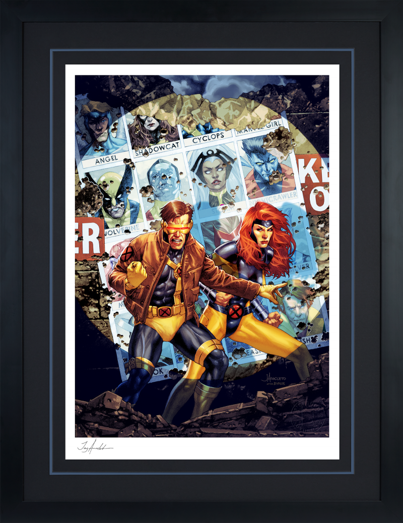 Jay Anacleto pays tribute to a piece of X-Men history with this incredibly detailed illustration inspired by John Byrne’s iconic cover to Uncanny X-Men #141. X-Men Blue and Gold team members Cyclops and Jean Grey are caught in a search beam as the fugitive mutants take a stand against the humans who hate and fear them for their uncanny abilities. Behind them is a torn poster depicting other famous members of the X-Men, considered to be dangerous criminals in a world that does not understand them.