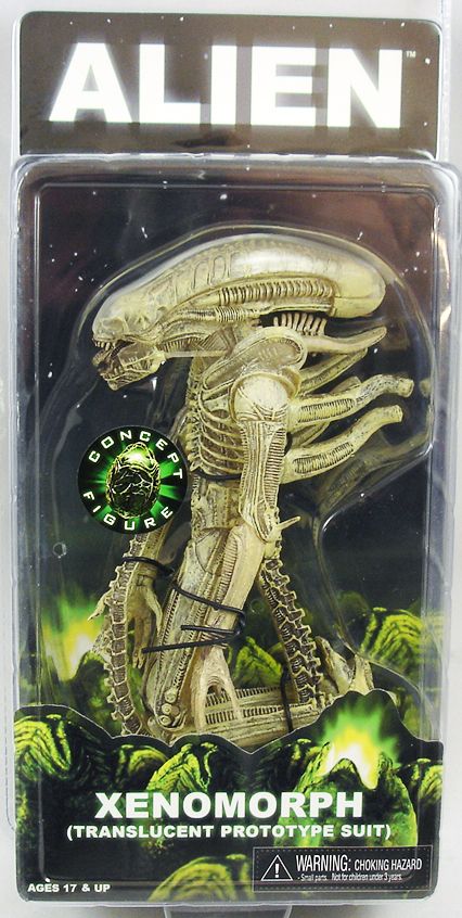 Also in this series is our very first concept figure based on the original prototype suit for the “Big Chap” Alien in the 1979 movie. H.R. Giger originally had the suit cast in a translucent flesh-tone but, in one of the many technical hurdles that had to be overcome to bring his creature to life on screen, repeated difficulties with the material forced the change to the coloring seen in the movie. The figure features 25 points of articulation and bendable tail, and stands over 9” tall.