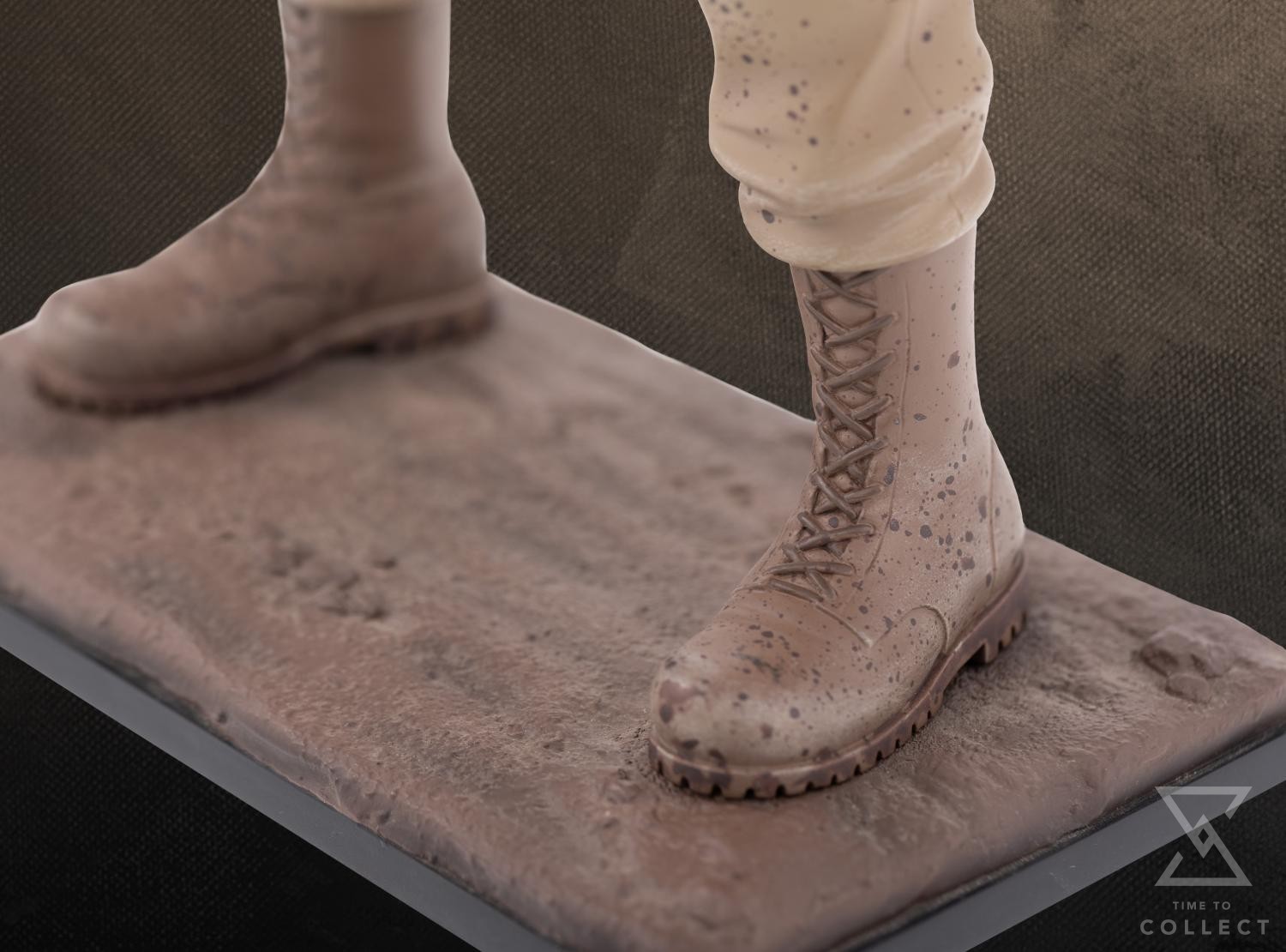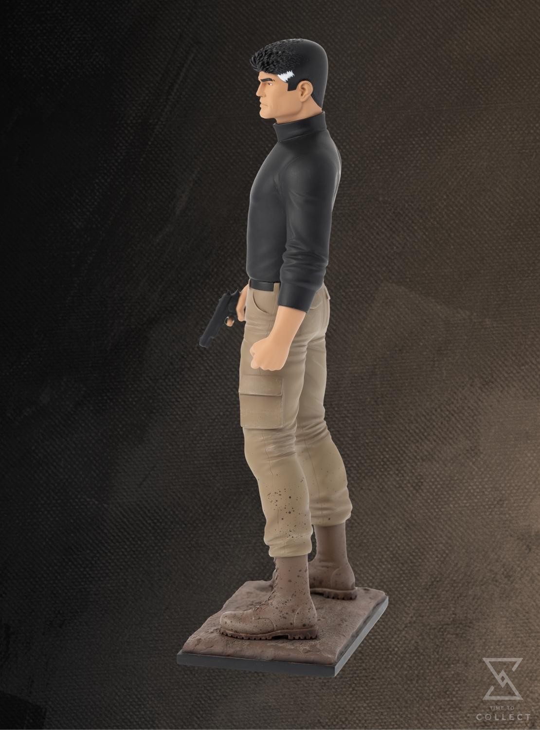 We no longer present XIII, the most famous amnesiac hero of the Franco-Belge Bande-Dessinée. And yet, if we had to remember his many identities, we must admit : we would be annoyed because we too have lost our memory! Whatever, we wanted to pay tribute here to this hero created in the mid-80s by the duo William Vance and Jean Van Hamme. XIII is a series of mysteries, espionage and conspiracies but it is also a formidable series of action. It is from this side that we went to seek inspiration among the albums and more particularly in volume 14 “Secret defense” in order to offer you an XIII in combat gear, automatic pistol in hand. Ah, we put you in the confidence: Thierry recently started sculpting Major Jones. She will therefore join XIII next year.