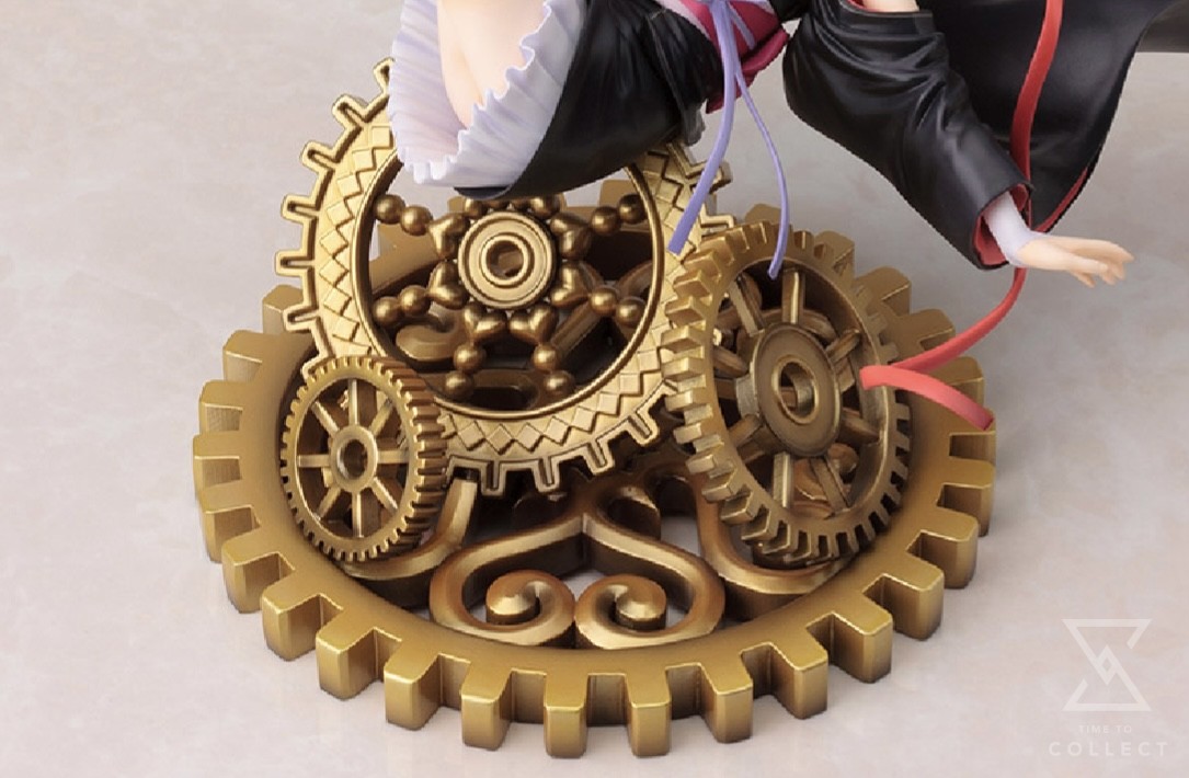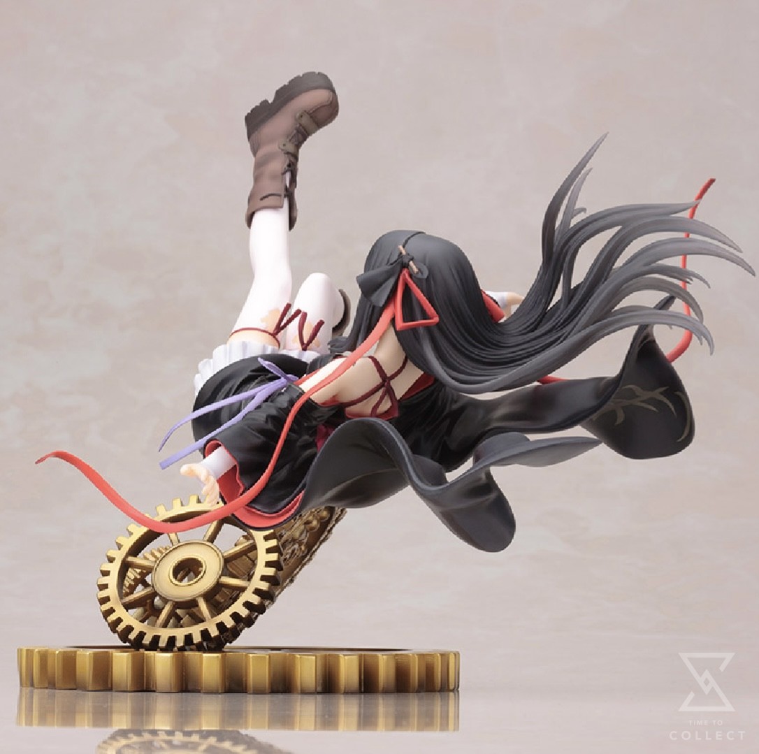 A Kotobukiya Japanese import! The next beautiful Ani*Statue from Kotobukiya comes from Unbreakable Machine-Doll, a Japanese light novel series (written by Reijii Kaito and illustrated by Ruroo) that’s seen successful adaptations into manga and a recent anime. The story revolves around student puppeteers in an alternate 1900s world where “Machinart” blends technology and magic to give life to automatons… like the main character’s machine doll Yaya! By all outward signs a real girl, Raishin’s automaton is captured in a highly dynamic Ani*Statue presentation as she falls through the air and appears to hover above a complex gear-themed base. Yaya wears a beautiful outfit consisting of heavy boots, stockings, and a detailed flowing and pleated dress that whips around her as she falls backward, with ribbons and sleeves floating around her with tremendous sculptural detail. The artificial girl even manages a very cute expression on her face, giving you an embarrassed smile as her long hair joins the motion of her clothing in mid-fall. Sculpted by Hideaki Kiyohara, Yaya reaches nearly 7 inches tall at the highest point of her left foot and is in perfect 1/8 scale. An incredible Ani*Statue, this automaton with her intricate, heart-themed gear base is the perfect addition to your collection!