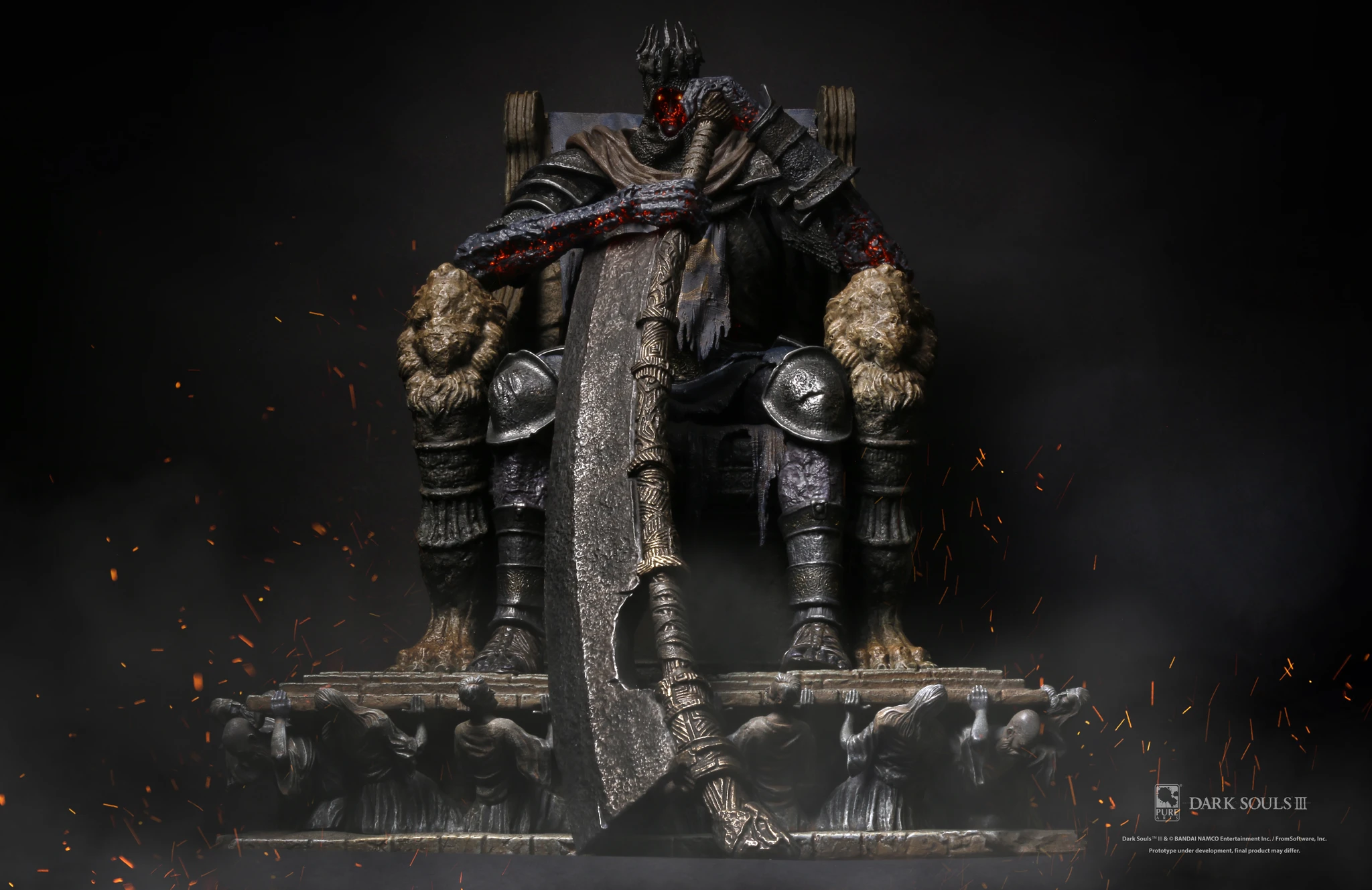 We wanted to represent Yhorm with his most iconic pose when he is sitting on his impressive throne.