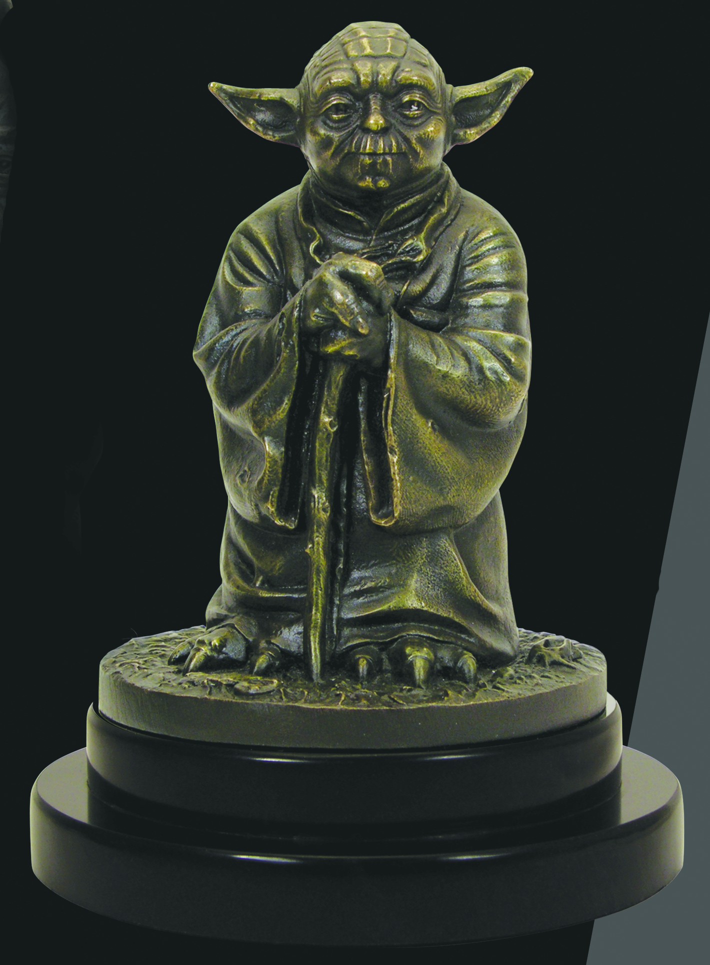 In collaboration with Lawrence Noble, Gentle Giant brings you a scale replica of the Yoda Fountain located in front of the Lucasfilm: Letterman Digital Art Center at the Presidio of San Francisco, California. This solid bronze cast of Yoda stands approximately 7.75 inches tall.