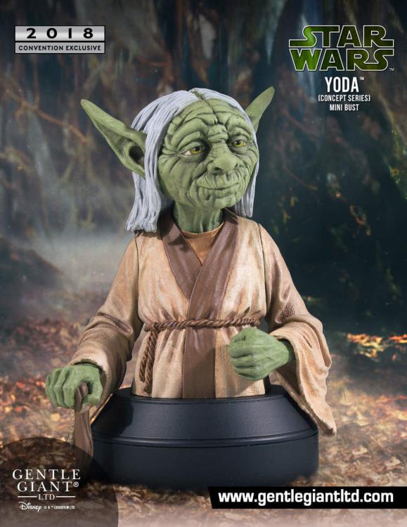 Continuing our long running line of convention exclusive mini busts based on the early concept art of the original Star Wars Trilogy, Gentle Giant Ltd. is proud to unveil the 2018 Yoda Concept Mini Bust.
