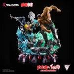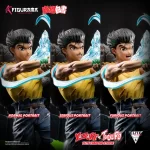 Yusuke vs. Toguro Elite Fandom Statue makes history as the first Figurama Collectors piece to feature two display positions for a character. Special engineering allows Yusuke to either hang upside-down in midair as he makes the iconic Spirit Gun shot from the anime, or flip upright for a more desperate pose with his back up against the wall. This feature, combined with five total swappable portraits, provides some of the most diverse display combinations ever designed for a Figurama Collectors statue. Yusuke’s three unique expressions convey his progression from calmness, to determination, to rage as he gradually takes facial injuries. Toguro’s two alternative portraits showcase him with or without his dark sunglasses, providing a rare look at the dangerous eyes usually hidden beneath his shades.