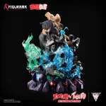 Green and blue LED effects illuminate the backdrop, as Toguro’s Demon Energy and Yusuke’s Spirit Energy disrupt the very foundation of the arena. Battling in midair with only airborne stones as a foothold, Yusuke aims a desperate Spirit Gun shot against Toguro’s impenetrable muscular manipulation technique. Beneath this critical moment frozen in time, a miniature replica of the Dark Tournament Stadium serves as the statue’s base, complete with its menacing red orbs and thick, thorny tendrils. Designed for a 360-degree viewing experience, the backside of the statue reveals a discarded entry ticket lying in the rubble. Nearby, a large LED scoreboard details the match and names of the combatants currently engaged in a fight to the death. ©Yoshihiro Togashi 1990-1994 ©Pierrot/Shueisha