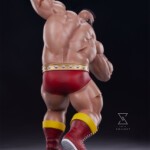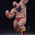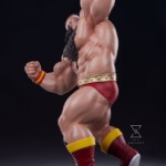 The Zangief 1:4 Statue stands atop a black museum style base, maintaining a consistent style with previous Street Fighter offerings from PCS.