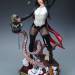 One of DC universe’s most powerful sorcerer, this premium collectible statue shows Zatanna right in her element, assured and confident as she uses her magic, ready to conjure illusions and manipulate reality. Zatanna stands on a pentagram, a mysterious briefcase at her feet overflowing with curious creatures. With 2 switchout right hand, one features her spell book, the other oh? Is that Detective Chimp?!