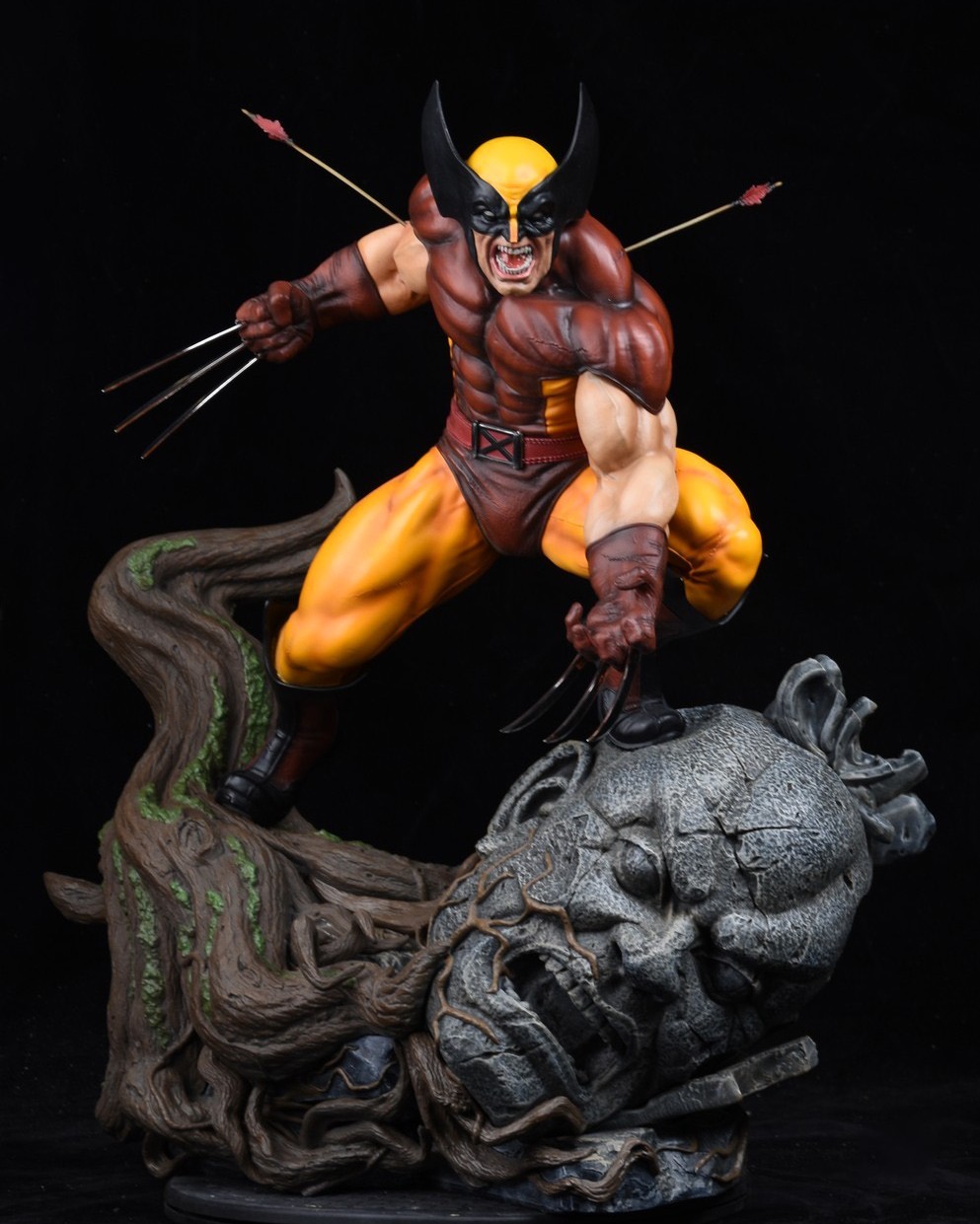Brown Wolverine (X-Men / Marvel) Details ID155856BrandExoresinRubricStatueScale1/4Size (H/W/D)54/45/52 cmRelease Price1700 Euro Share this with your friends Shopping-Partner Features 3 portraits ( masked open mouth, masked closed mouth, unmasked) 2 left hands ( open hand, closed fist) 2 right hands ( closed fist, holding sword) arrows are removable