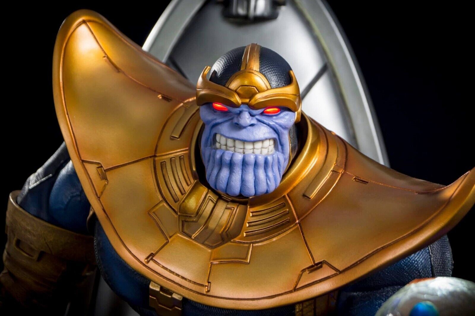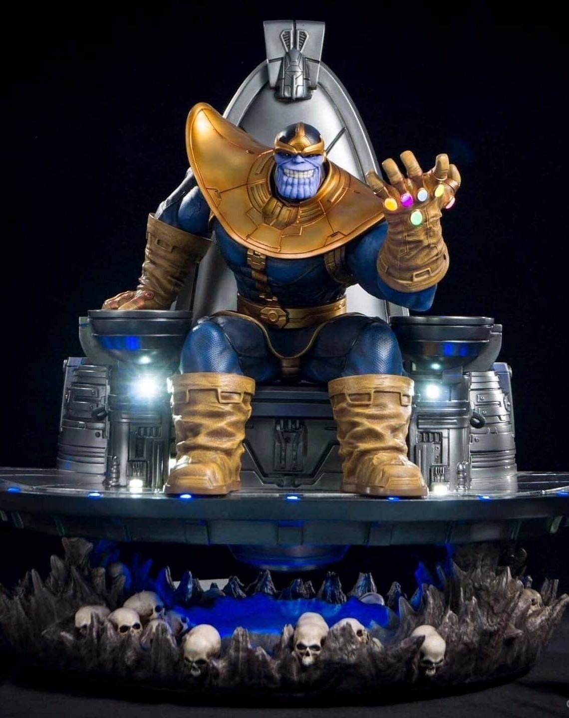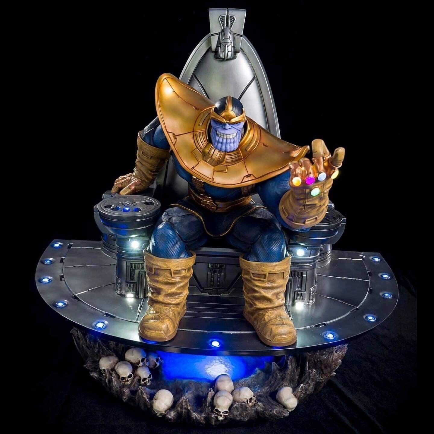 Thanos on Throne (Marvel) Details ID159900BrandMaster CustomsRubricStatueScale1/4 Share this with your friends Shopping-Partner Features Light Up Base and Throne 4 Swappable Hands with light up features 3 Swappable portraits with light up features