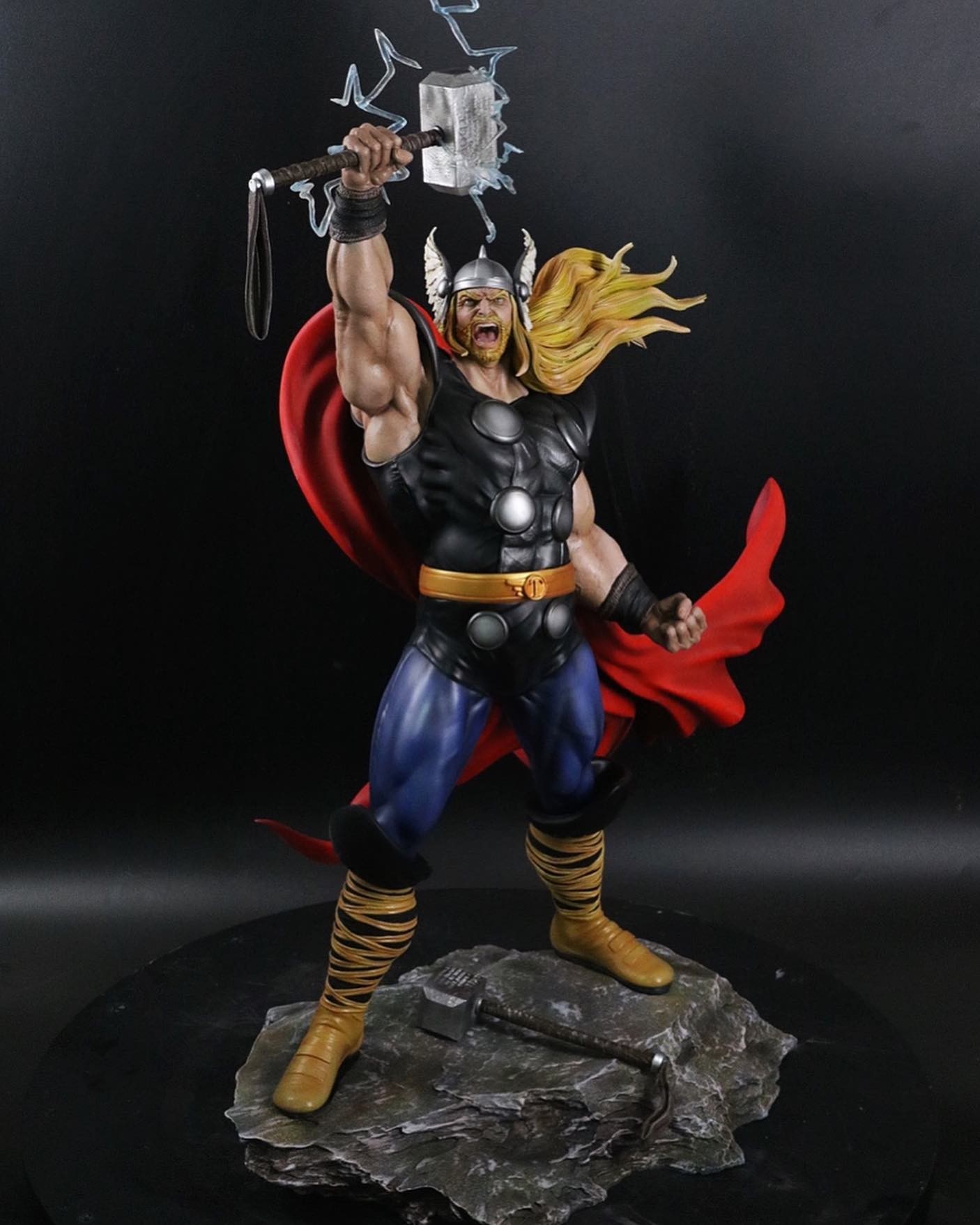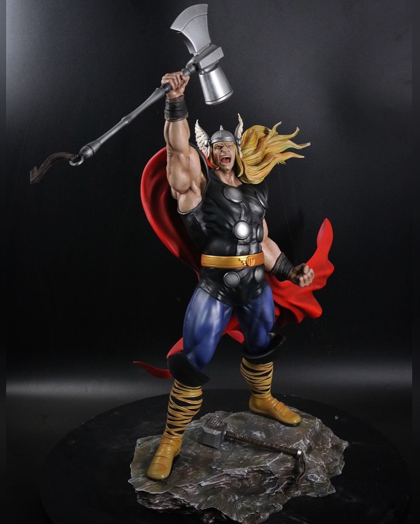 Thor (Marvel) Details ID159565BrandThe Graven LabsRubricStatueScale1/4Release2019Edition Size40 Share this with your friends Shopping-Partner Features Includes Mjornir, Stormbreaker & Broken Mjornir 2 Head Display Options (Bearded & Non Bearded) – also includes mask for eyes