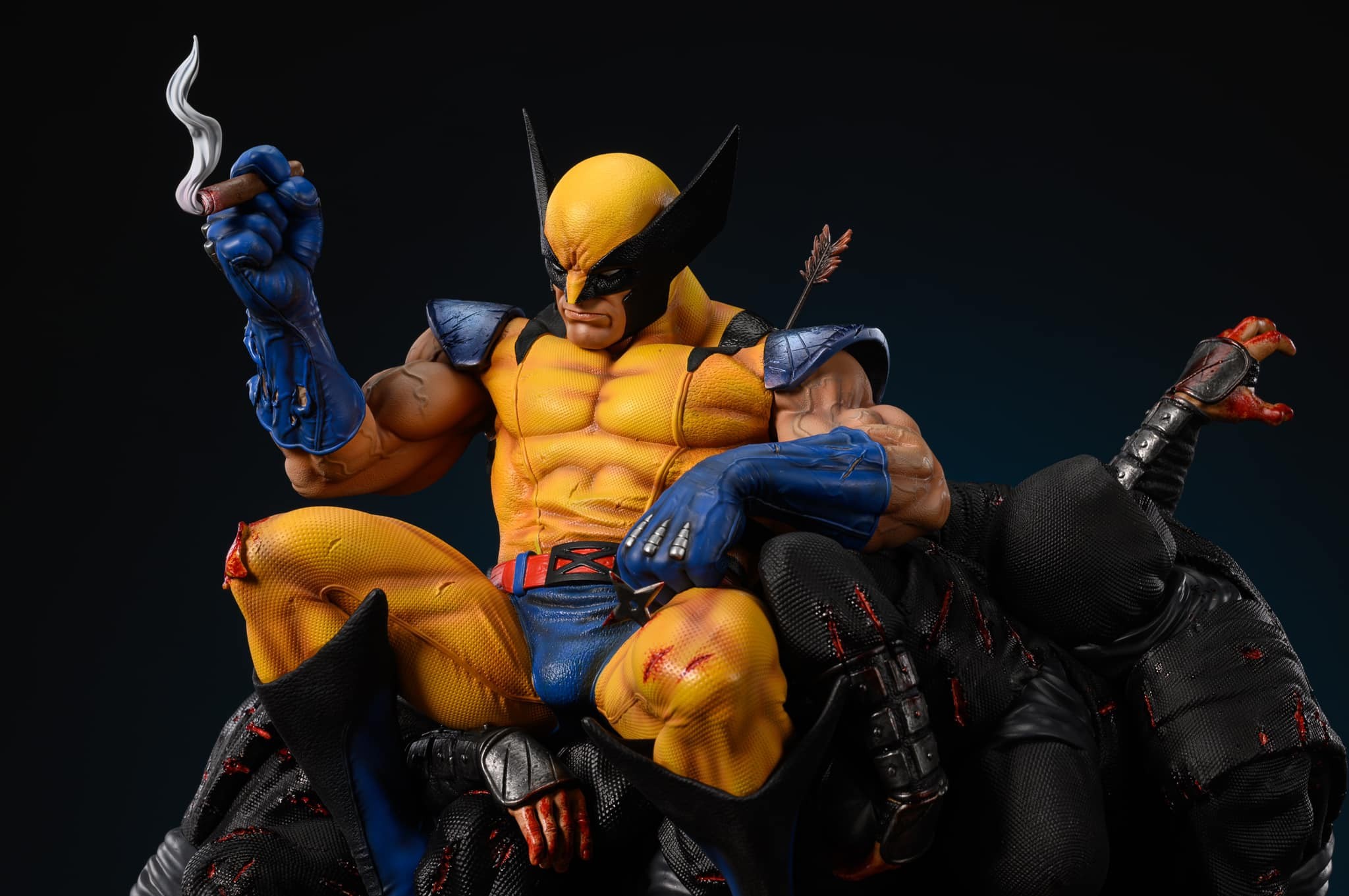 - 3 Arm switchouts: claws extended, holding cigar, and skewered ninja head